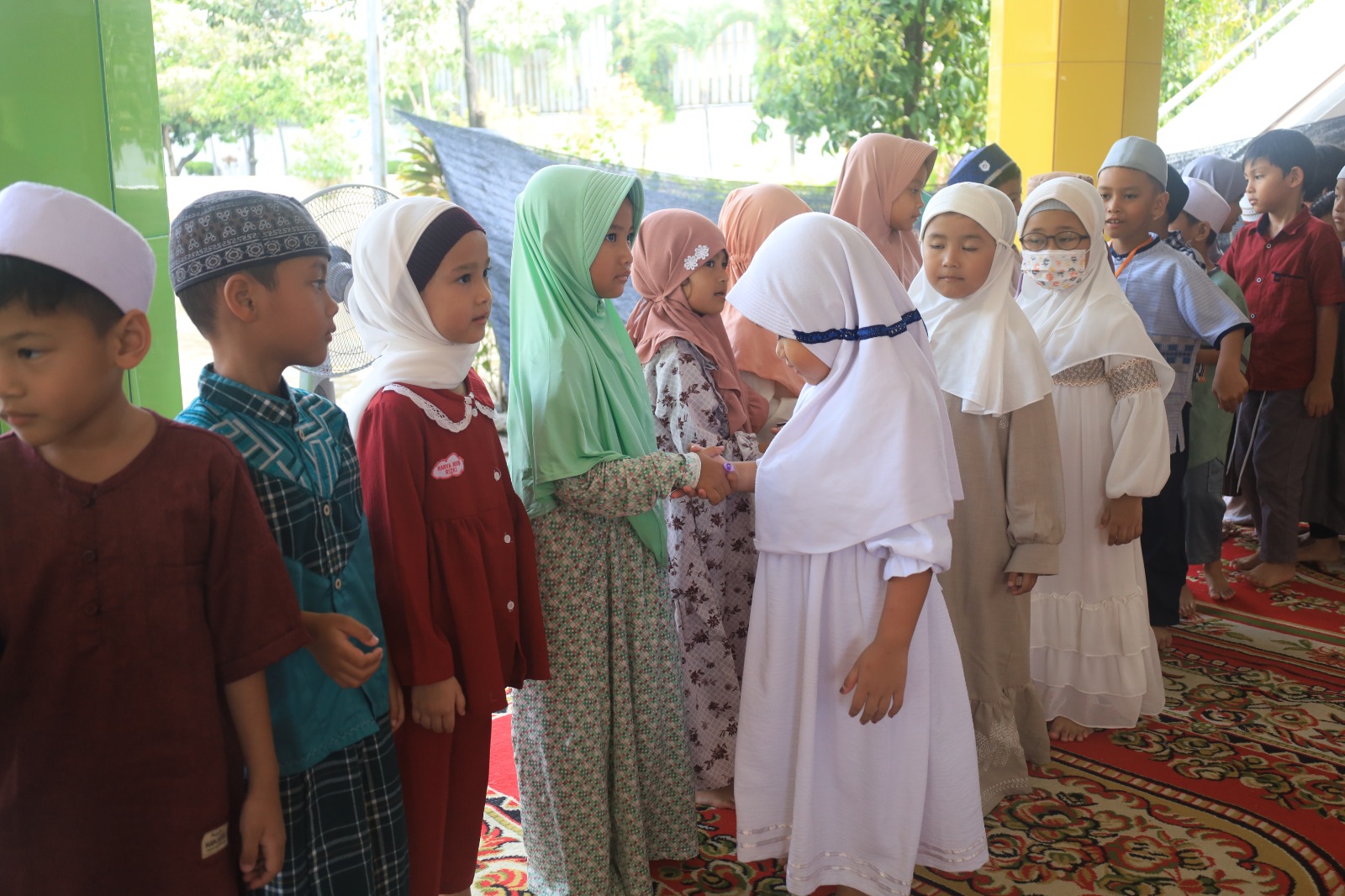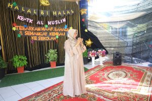 Bel berbunyi semua siswa berkumpul di hall, suasana riang, gembira, dan bahagia nampak pada wajah siswa-siswi KB-TK Al Muslim memakai busana muslim warna-warni. Pembukaan halalbihalal oleh Ustazah Murtingsih selaku MC nya, selanjutnya pembacaan ayat suci Al-Quran oleh Aiswa dan Aufar membacakan surat Al Insyiroh.