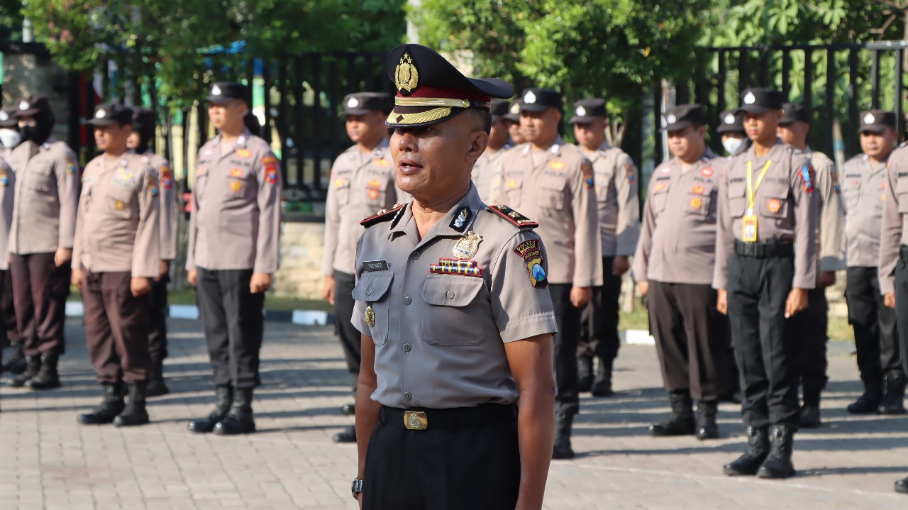 NGANJUK — Kapolres Nganjuk AKBP Muhammad S.H.,S.I.K.,M.Si., memimpin Upacara kenaikan pangkat pengabdian periode 1 Juni 2024 dan pembukaan latihan kerja (Latja) Siswa Diktuk BA Gelombang I T.A. 2024 di lapangan apel Polres Nganjuk. Upacara dihadiri Wakapolres, Pejabat Utama (PJU) Kapolsek jajaran dan anggota Polres, Rabu (05/06/2024).