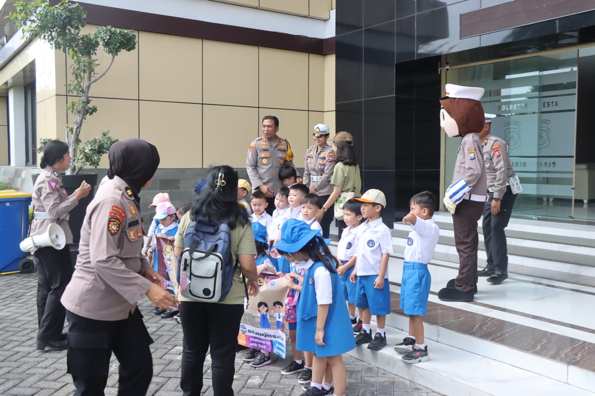 SIDOARJO, GELORAJATIM.COM – Mengenal lebih dekat Polisi yang begitu humanis dengan masyarakat, menjadi pengalaman berarti bagi siswa-siswi TK Kristen Petra 13, Kamis (18/4/2024), saat melakukan field trip ke Mako Polresta Sidoarjo.