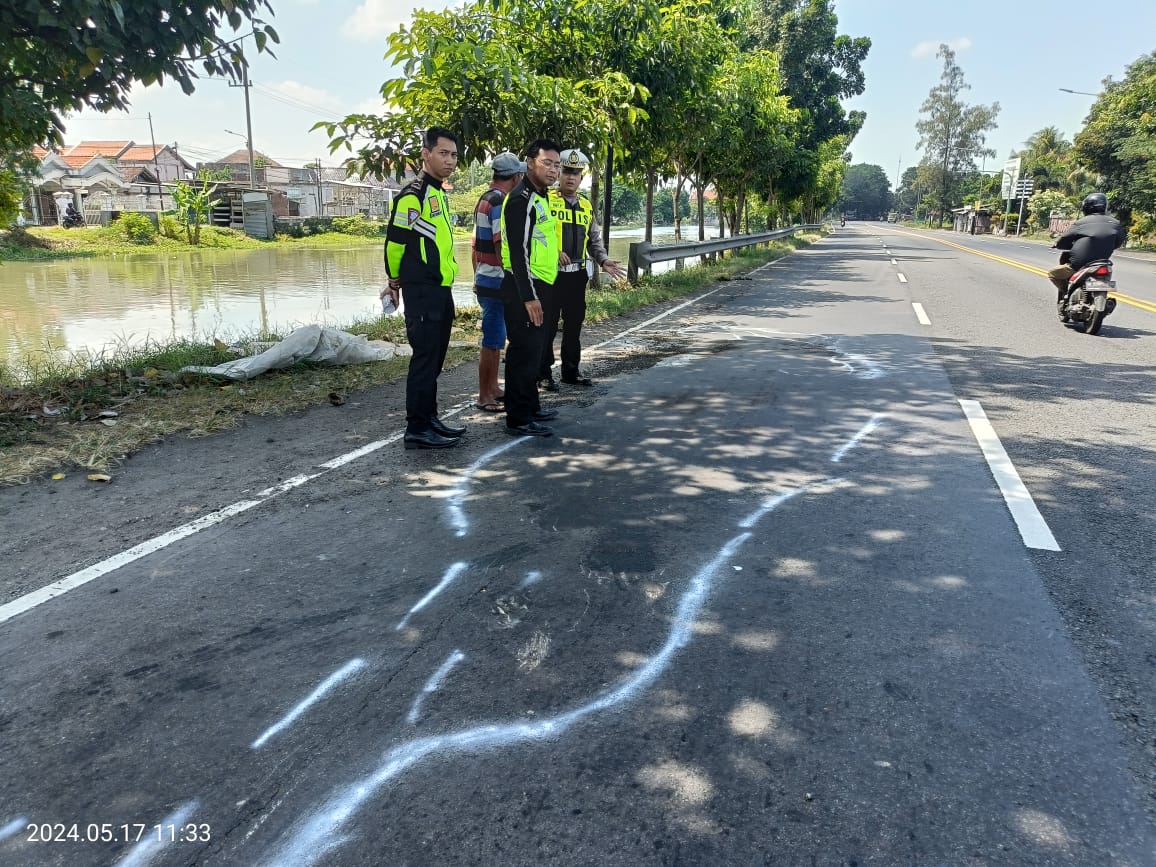 SIDOARJO — Satlantas Polresta Sidoarjo bergerak cepat menangani kasus kecelakaan yang terjadi di area Balongbendo, Jumat (17/5/2024) sekira jam 07.45 WIB. Dalam tragedi laka lantas tersebut mengakibatkan korban meninggal dunia (MD) dilokasi, Jalan Raya Wonokupang tepatnya timur SMP 1 Negeri Balongbendo, Kabupaten Sidoarjo.