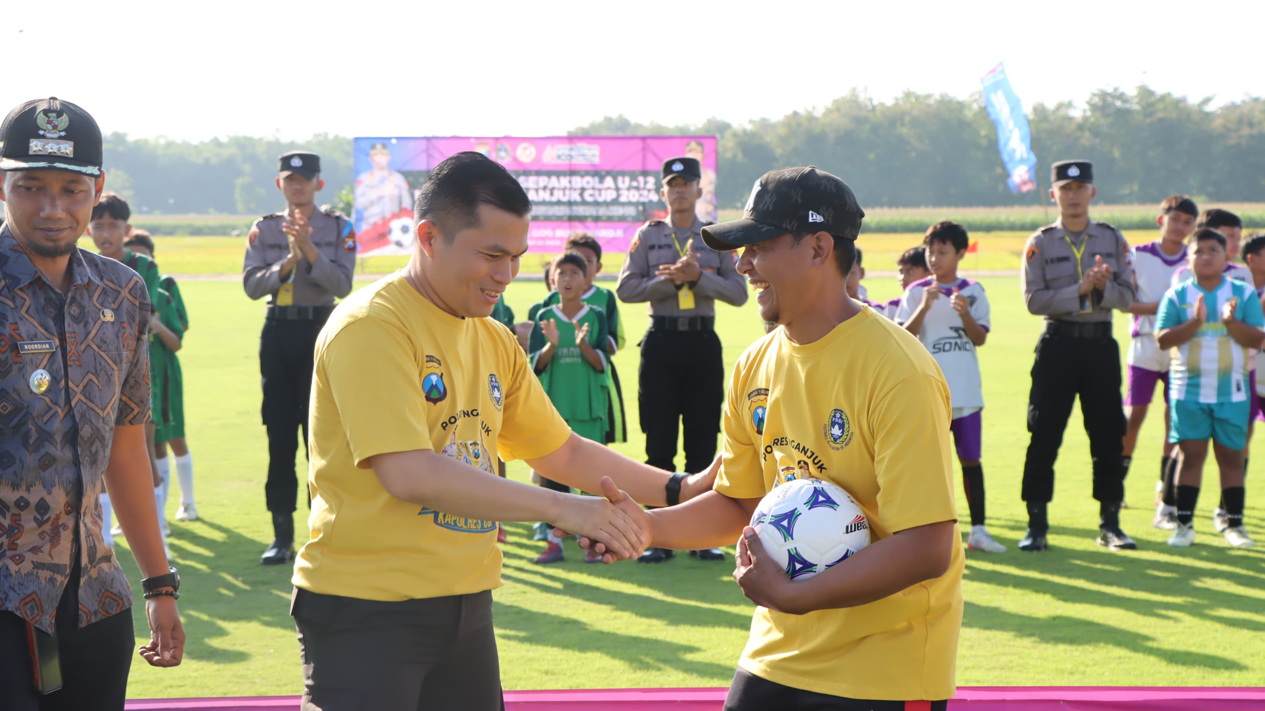 Open Turnamen Sepak Bola U-12 Kapolres Nganjuk Cup 2024 resmi dibuka dengan tendangan bola oleh Kapolres Nganjuk dengan didampingi panitia penyelenggara dan unsur Forkopimcam Kecamatan Pace, kabupaten Nganjuk, dilanjutkan dengan pertandingan fase group antara Wilis Putra FC vs Jawara FC.(Sult/hms)