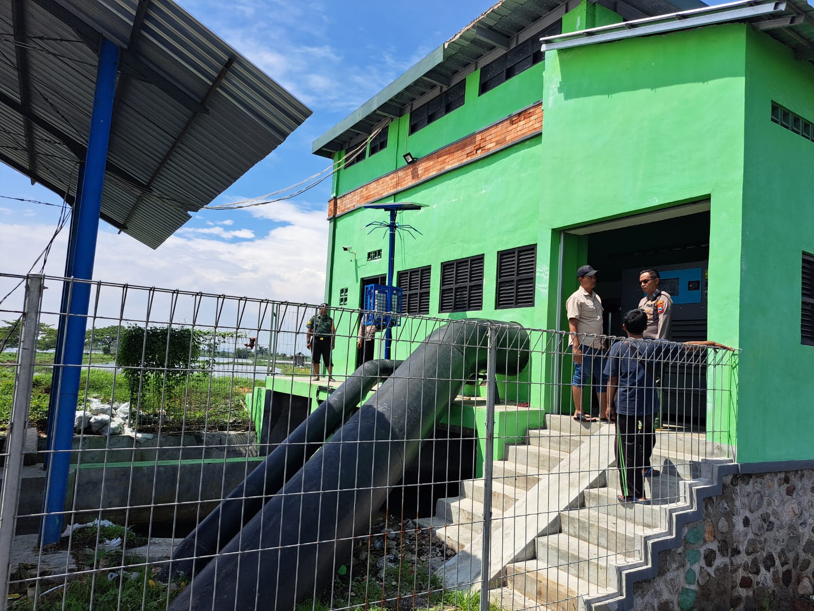 “Mengecek dan memastikan rumah pompa dump air Desa Banjarpanji menjadi perhatian Kapolsek Tanggulangin Kompol I GP Atmagiri SH MH dengan pengawalan Kanit intelkam Ipda Suyono SH, dump rumah pompa tersebut sering tidak berfungsi dan mesin pompa penyedot air sering mogok.
