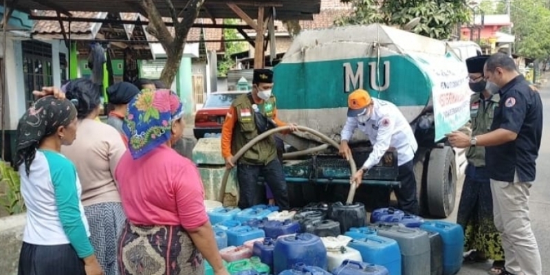 Warga sedang mengantri air bersih. GeloraJatim.com _ Badan Penanggulangan Bencana Daerah (BPBD) Jatim bersinergi dengan Lembaga Penanggulangan Bencana dan Perubahan Iklim (LPBI) NU Cabang Bangil untuk...
